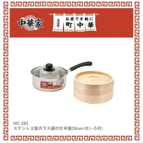パール金属 中華家 ステンレス製ガラス蓋付片手鍋18cmせいろ付 HC-0281