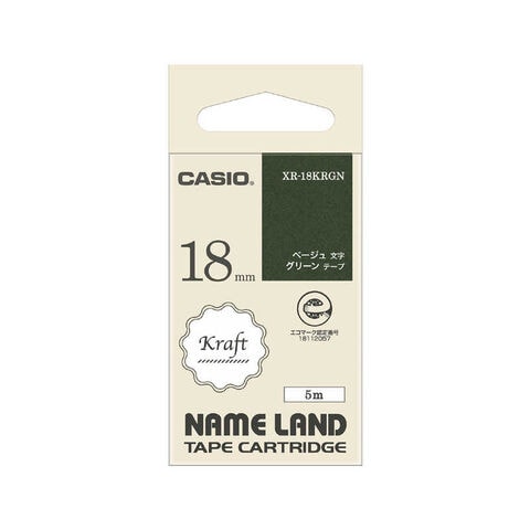 カシオ CASIO ラベルライターNAME LAND用テープ 緑 [ベージュ文字 /18mm幅] [XR18KRGN] XR-18KRGN