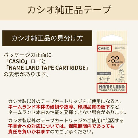 カシオ CASIO NAME LANDテープ カットラベル [黒文字 /36mm幅] ベージュ XR-36CTBE1