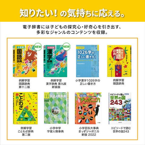 小学生の学習をしっかりサポートできる辞書や百科事典などを収録。