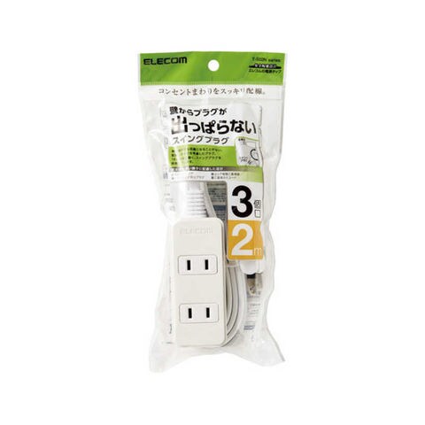 エレコム ELECOM スイングプラグタップ 3個口 2m ホワイト [TS02N2320WH] T-S02N-2320WH