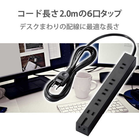 エレコム ELECOM 回転機能タップ 6個口 内3ピン1 2m ブラック [TKF012620BK] T-KF01-2620BK