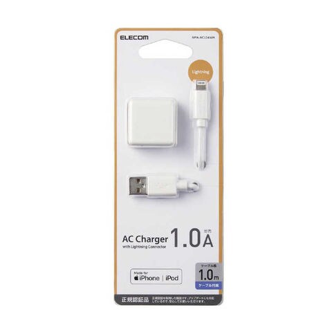 エレコム ELECOM LightningAC充電器 1.0A出力 ケーブル同梱 1.0m ホワイト [MPAACL04WH] MPA-ACL04WH