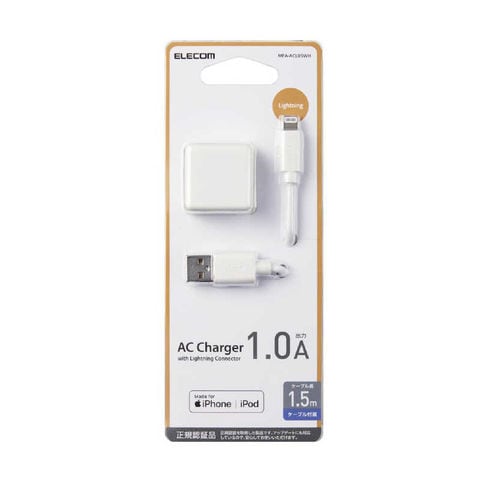 エレコム ELECOM LightningAC充電器 1.0A出力 ケーブル同梱 1.5m ホワイト [MPAACL05WH] MPA-ACL05WH