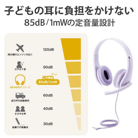 エレコム ELECOM ヘッドセット こども専用 [φ3.5mmミニプラグ /両耳 /ヘッドバンドタイプ] [HSKD01TPL] HS-KD01TPL パープル