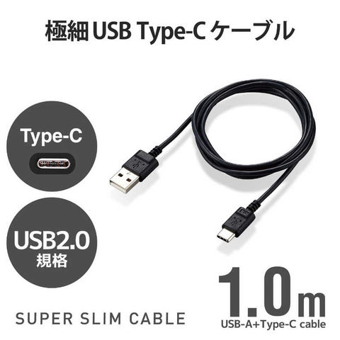 エレコム ELECOM USB Type-Cケーブル スマホ用 USB(A-C) 極細 1.0m [MPAACX10BK] MPA-ACX10BK