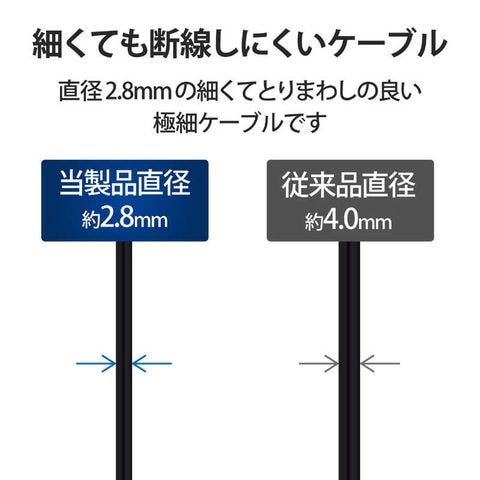 ●直径2.8mmの細くてとりまわしの良い極細ケーブルを使用しています。