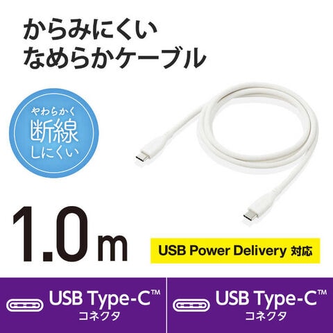 エレコム ELECOM USB Type-C to USB Type-Cケーブル USB Power Delivery対応 なめらか 1.0m ホワイト [MPACCSS10WH] MPA-CCSS10WH