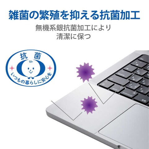 仕様1:■対応機種:MacBook Pro 14インチ(2023/2021年発売モデル) ※2023年2月時点での情報です。■寸法:パームレスト部:幅91mm×高さ88mm×2枚、タッチパッド部:幅128mm×高さ80.2mm■フィルター厚み:0.15mm(他保護シート0.08mm)■抗菌加工:SIAAマーク取得( JP0122130A0009T)/抗菌機能付き/JIS Z 2801(抗菌性能試験)準拠試験にて抗菌活性値2.0 以上■材質:接合面:シリコン、外側:PET■表面硬度:3H