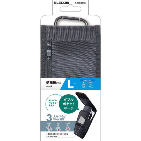エレコム ELECOM スマートフォン用キャリングポーチ/カラビナ付キ/ベルトループ/3WAY装着/ダブルポケット/Lサイズ/ブラック P05CC2BK