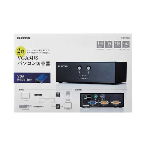 エレコム ELECOM KVMスイッチ パソコン2台 切替器 ディスプレイ端子 VGA マウス・キーボード端子 USB PS2 ( Windows macOS 対応 ) バスパワー駆動 [KVMNVXSN2] KVM-NVXSN2