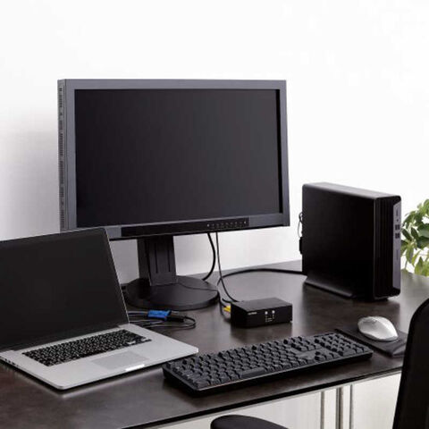 1組のマウス、キーボード、VGAディスプレイで、2台のパソコンを切り替えて操作可能!エミュレーション機能によって、デバイス切り替え時の接続がスムーズに