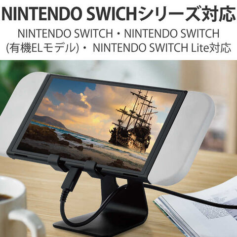 ●スマートフォン、NINTENDO SWITCH(TM)、NINTENDO SWITCH(TM)(有機ELモデル)、NINTENDO SWITCH(TM) Liteを充電しながら使用できる、自由に角度調節が可能なフリーアングルスタイルのアルミスタンドです。