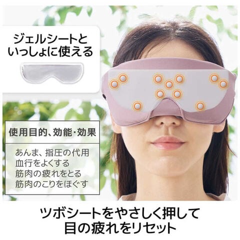 ジェルパックとツボシートが付属し、ホット・クール・ツボ押しの3Wayで使用可能。さまざまなアプローチで目元を癒やします。