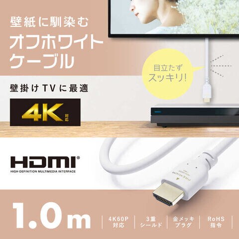 お部屋の壁紙に馴染むオフホワイトカラーを採用しているので、壁掛けテレビへの接続におすすめです。
