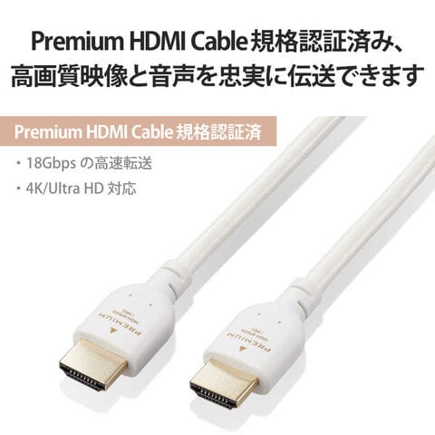 エレコム ELECOM HDMIケーブル Premium HDMI 1m 4K 60P 金メッキ ホワイト DH-HDPS14E10WH