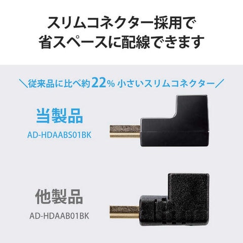 エレコム ELECOM HDMI L字 変換 アダプタ 上向き 90度 オスメス変換 HDMIケーブル 延長 コネクタ 4K 60p 金メッキ RoHS指令準拠 ブラック ADHDAABS01BK