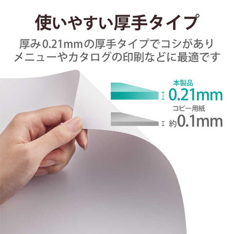 厚み0.21mmの厚手タイプでしっかりしたコシがあり、メニューやカタログの印刷などに最適です。