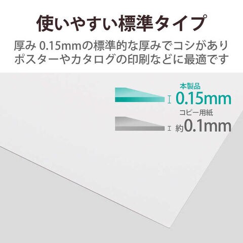 厚み0.15mmの標準的な厚みでしっかりしたコシがあり、ポスターやカタログの印刷などに最適です。
