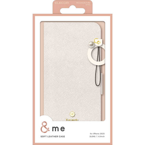 エレコム ELECOM iPhone 15(6.1インチ) レザーケース/手帳/磁石/&Me/ホワイト PM-A23APLFJM2WH
