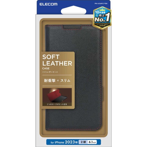 エレコム ELECOM iPhone 15(6.1インチ) レザーケース/手帳/耐衝撃/ブラック PM-A23APLFYBK