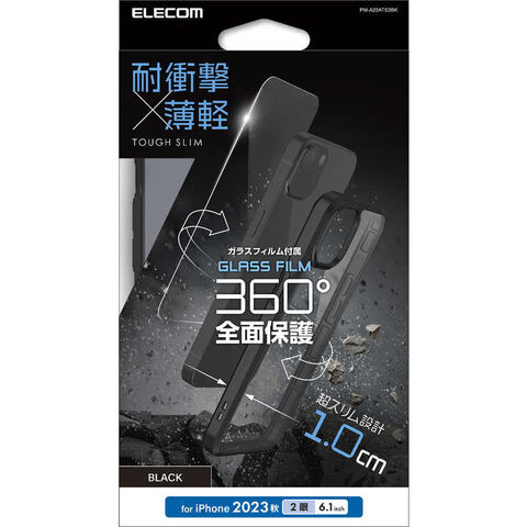 エレコム ELECOM iPhone 15(6.1インチ) ハイブリッドケース/背面クリア/フィルムツキ PM-A23ATS3BK