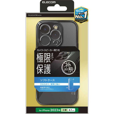 エレコム ELECOM iPhone 15 Pro(6.1インチ) ソフトケース/極限保護/メタリック/ブラック PM-A23CUCTMKBK
