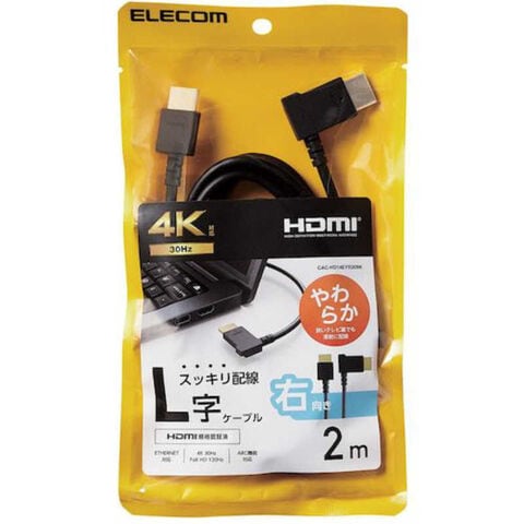 エレコム ELECOM ハイスピードHDMIケーブル 右向きL型 やわらかタイプ [2m /HDMI⇔HDMI /スタンダードタイプ /イーサネット対応] ブラック CAC-HD14EYR20BK