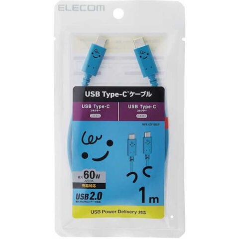 エレコム ELECOM USB Type-Cケーブル 顔ツキタイプ 1.0m ベイビー(ブルー×ブラック) MPA-CCF10BUF