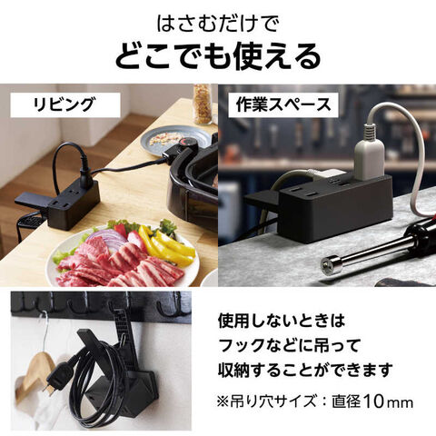 タップを常設できないダイニングテーブルなどに一時的に電源を設置できます。