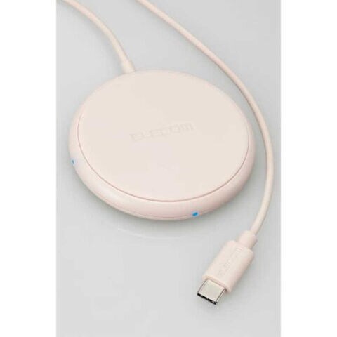 エレコム ELECOM ワイヤレス充電器 Qi認証 5W 卓上 滑り止めパッド ケーブル一体 おくだけ充電 ピンク W-QA25PN
