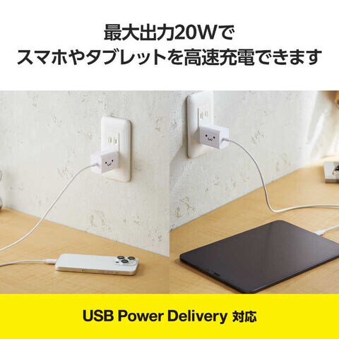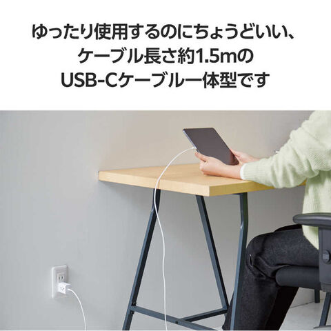 USB Power Deliveryに対応したUSB Type-C(TM)プラグを搭載し、対応するスマートフォン、タブレットなどを充電できるUSB AC充電器です。