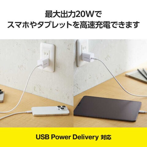 エレコム ELECOM USB Type-C 充電器 PD 20W 1ポート Type C ケーブル 付属 1.5m ホワイト MPA-ACCP7120WH