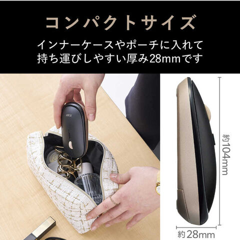 インナーケースやポーチに入れて持ち運びしやすい厚み28mmの薄型マウスです。