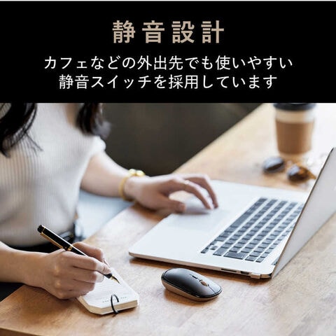 クリック時のカチカチ音がしない静音スイッチを採用。