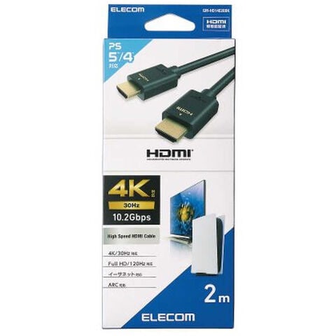 エレコム ELECOM HDMI 1.4 ケーブル ハイスピード 2m 4K 30Hz フルHD 120Hz ARC イーサネット High Speed HDMI Cable 認証品 ブラック GM-HD14E20BK