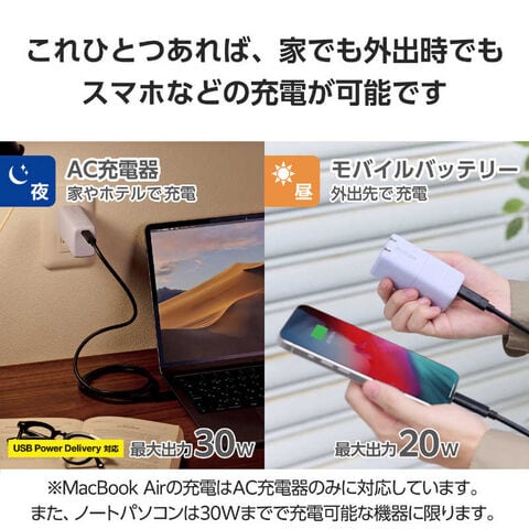1台2役で使える、USB Power Delivery AC充電器一体型モバイルバッテリーです。