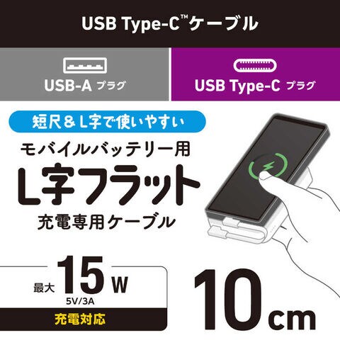 エレコム ELECOM Type-C ケーブル USB A to USB C 短い 0.1m L字 フラット モバイルバッテリー 向け 充電ケーブル ホワイト MPA-ACLL01WH