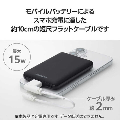 ケーブル長約10cmの短尺フラットケーブルで取り回しがしやすく、コンパクトで持ち運びにも便利です。