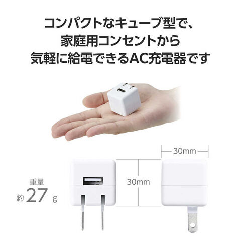 仕様2:■定格出力電圧:5V■定格出力電流:1A■外形寸法:幅約30mm×奥行約30mm×高さ約30mm(ACプラグ収納時)■重量:約27g■カラー:ホワイト■法令:◇PSE 特定電気用品■使用可能地域:日本■保証期間:1年間