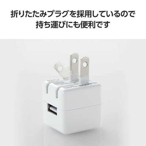 エレコム ELECOM キューブ型AC充電器 5W USB-A ×1 折りたたみプラグ コンパクト ホワイト MPA-ACW01WH