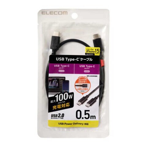 エレコム ELECOM タイプC ケーブル USB Type-C to Type-C 0.5m PD 100W 急速充電 ブラック MPA-XCC5P05BK