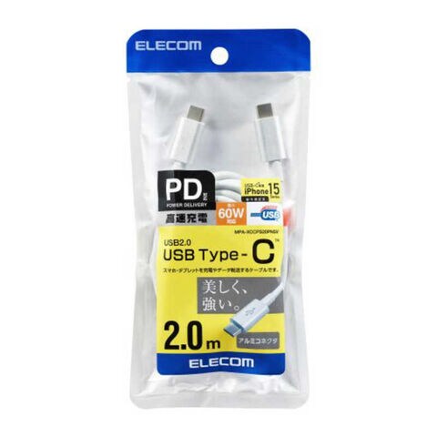 エレコム ELECOM タイプC ケーブル USB Type-C to Type-C 2m PD 60W 急速充電 断線しにくい スリム耐久ケーブル シルバー MPA-XCCPS20PNSV