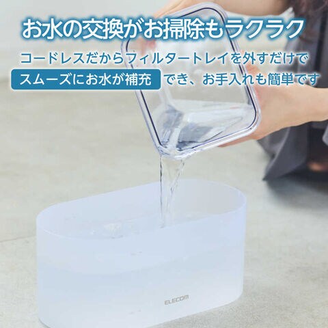 お水の交換・補給はフィルタートレイを取り外すだけでスムーズにできるから、お手入れも簡単です。