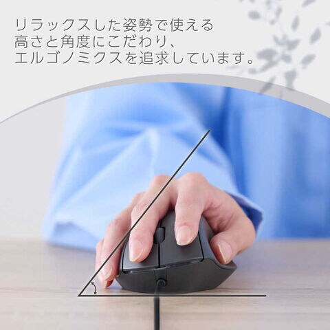 高さと角度にこだわったエルゴノミクス形状で、手のひらから手首、腕までリラックスした姿勢で使えます。