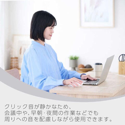 クリック音が静かなため、ミーティング中やリビング・カフェ、シェアオフィスなど周りに人がいる場面でも音を気にせず使えます。