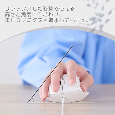 高さと角度にこだわったエルゴノミクス形状で、手のひらから手首、腕までリラックスした姿勢で使えます。