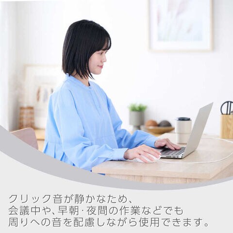 クリック音が静かなため、ミーティング中やリビング・カフェ、シェアオフィスなど周りに人がいる場面でも音を気にせず使えます。