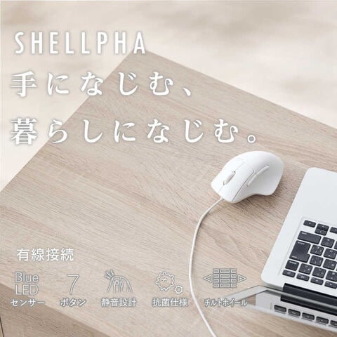 エレコム ELECOM 有線 USB マウス 静音 5ボタン チルトホイール付 エルゴノミクス 抗菌 Mサイズ SHELLPHA ホワイト M-SH30UBSKWH