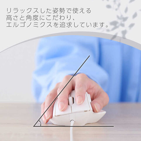 高さと角度にこだわったエルゴノミクス形状で、手のひらから手首、腕までリラックスした姿勢で使えます。